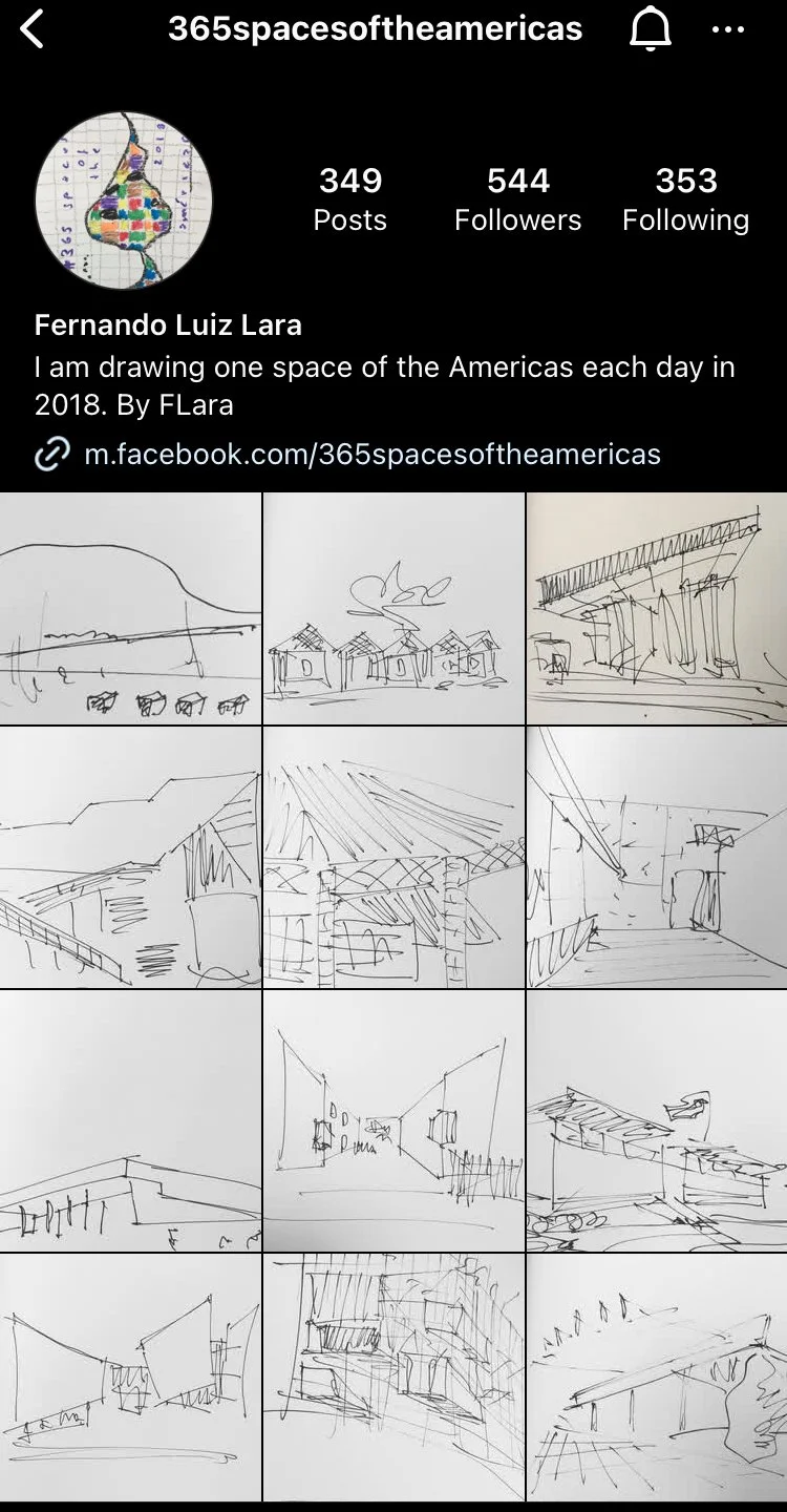 During the year of 2018 I daily drew and posted on Instagram one space of the Americas. The idea was to call attention to how little we know about our own spaces given the overwhelming Eurocentrism of the discipline of architecture and urbanism.